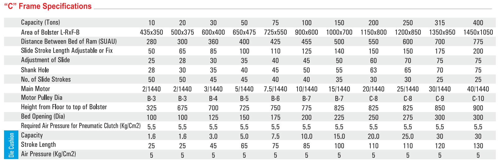 Durable Construction: Built with high-grade materials and precision engineering, our “C” Frame Press Machines are designed to withstand rigorous industrial use.