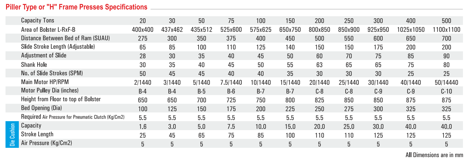When precision meets power, Milap Engineering Works delivers. Our Pillar Type or H Frame Presses are engineered to provide exceptional stability, accuracy, and performance, making them the ideal choice for industries requiring medium to heavy-duty pressing operations. With a capacity of up to 500 tons, these presses are designed to handle a wide range of applications with efficiency and reliability.